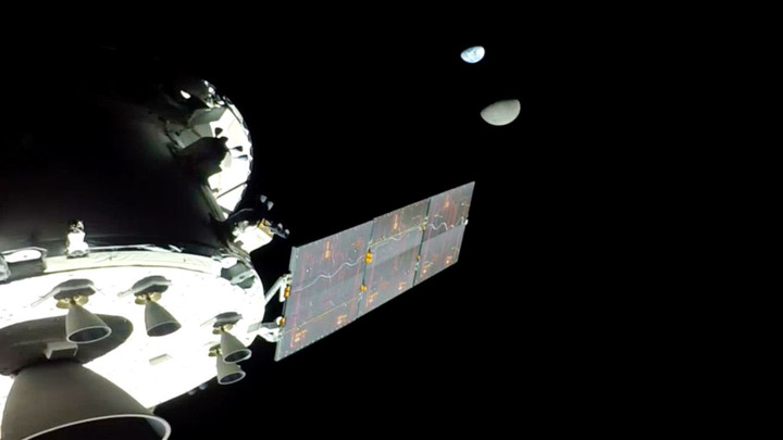 Từ khoảng cách này, máy ảnh của tàu vũ trụ Orion đã chụp được hình ảnh chưa từng thấy Mặt Trăng che khuất Trái đất. Bức ảnh được nhiều người liên tưởng tới “chấm xanh nhạt” nổi tiếng được tàu thăm dò Voyager 1 khi đi qua quỹ đạo của Sao Hải Vương vào tháng 2/1990.