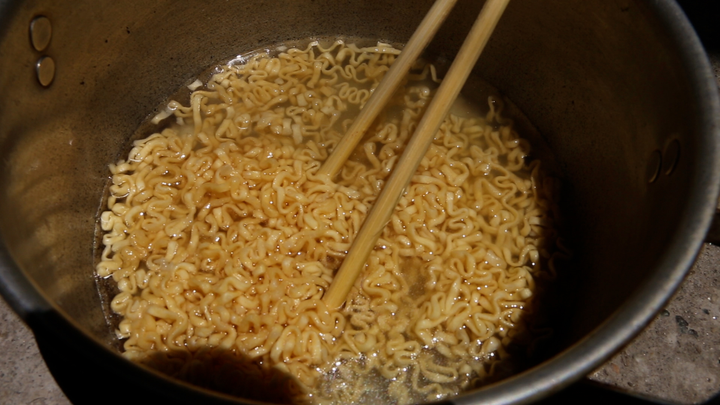 Nấu chín mỳ tôm dưới nắng nóng hơn 40 độ C ở Hà Nội