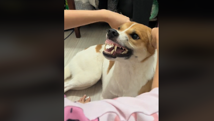 Tiếng gầm gừ cáu kỉnh của chú chó khi bị trêu đùa thật ăn nhịp với hành động "nẹt pô" của chủ trên đôi tai chú ta.