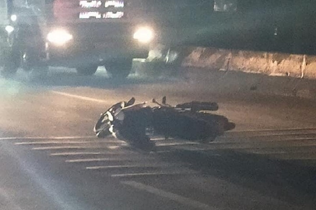 Hiện trường vụ tai nạn đêm 11/12 ở Bình Dương, nạn nhân là anh P., bị xe khách đâm chết sau khoảng thời gian nằm trên đường do ngã xe nhưng không ai đỡ dậy.