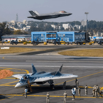 Su-57 và F-35 tại Aero India 2025. (Ảnh: Reddit)