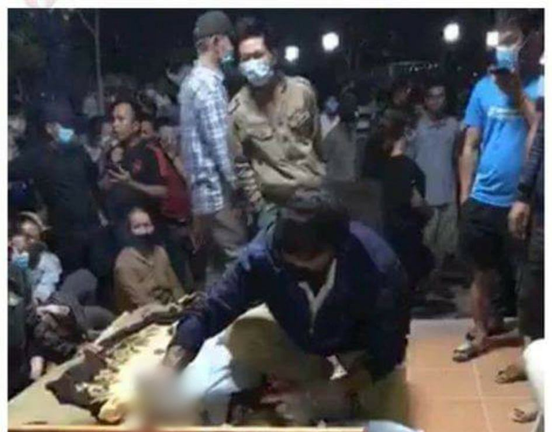 Người nhà đưa thi thể ông Tư lên trụ sở UBND xã để yêu cầu làm rõ nguyên nhân ông này chết sau khi giằng co với công an.