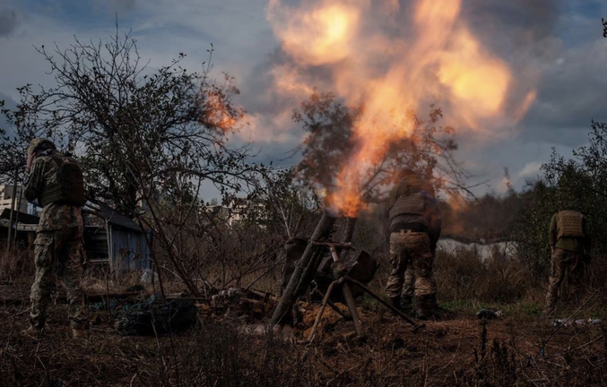 Một trận địa pháo của quân đội Ukraine gần Bakhmut. (Ảnh tư liệu: Reuters)