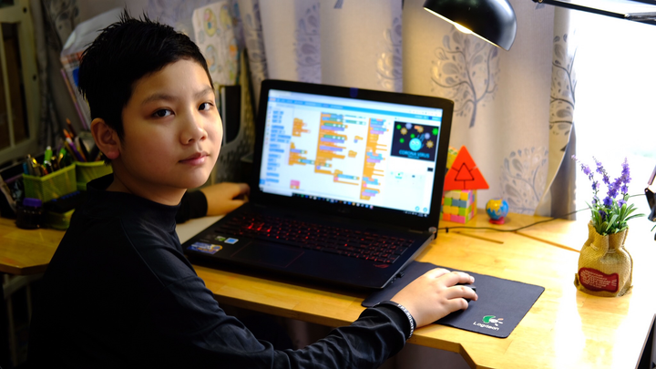 Chị Lê Thị Thu Trang - mẹ của Minh Khang cho biết, con trai có sở thích và đam mê sáng tạo ra các trò chơi điện tử từ đầu năm học lớp 3. Do công việc khá bận nên bố mẹ không có thời gian hỗ trợ con học.