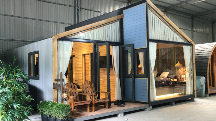 Biệt thư mini di động rộng 40 m2 được ráp từ 2 khối thép của anh Huỳnh Bảo Toàn (quận 12, TP.HCM), thời gian thi công trong 21 ngày với giá trị 470 triệu đồng.