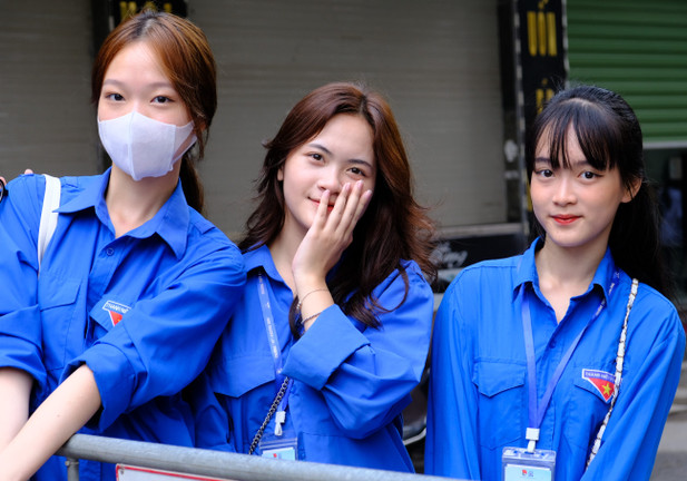 Những "bóng hồng" tình nguyện xinh đẹp tại điểm thi trường THPT Khương Đình.