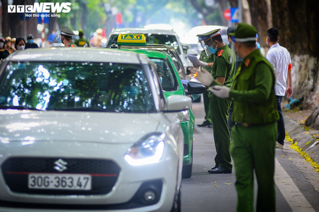 Theo ghi nhận của PV, trên đường Phan Đình Phùng, tổ công tác liên nghành kiểm soát lưu động của Công an TP Hà Nội lập chốt chặn, kiểm tra và xử phạt người ra đường không lý do.