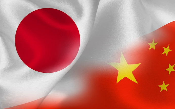Cờ Nhật Bản và cờ Trung Quốc. (Ảnh: Belt and Road news)