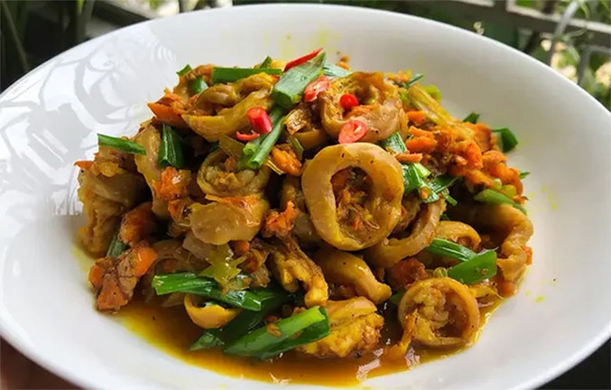 Món lòng già xào nghệ. (Ảnh: Cookpad)