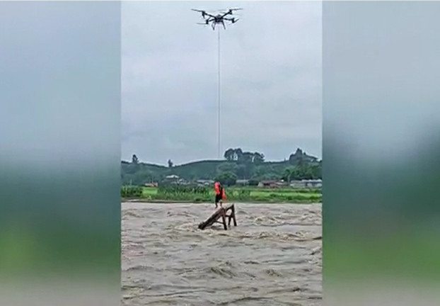 Ngoạn mục Drone giải cứu người đàn ông mắc kẹt giữa dòng lũ dữ ở Trung Quốc