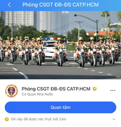 Người dân quan tâm có thể vào ứng dụng Zalo và nhập từ khóa Phòng CSGT ĐB-ĐS CATP.HCM vào ô tìm kiếm.