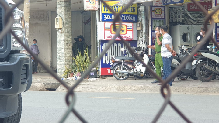 Nhận tin báo, Công an TP.HCM phối hợp với Công an quận Gò Vấp phong tỏa con đường, khám nghiệm hiện trường.