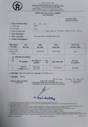Kết quả xét nghiệm bằng kỹ thuật Real time RT-PCR cho thấy, nạn nhân âm tính đối với SARS-CoV-2 (virus gây bệnh Covid-19).