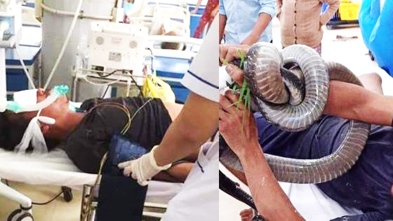 Ngày 19/8, anh Phan Văn Tâm (38 tuổi, ngụ huyện Tân Châu, tỉnh Tây Ninh) bị rắn hổ mang chúa cắn. Khi nhập viện, anh Tâm còn giữ chặt con rắn còn sống, dài gần 3 m, nặng gần 5 kg quấn quanh khuỷu tay.