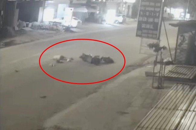 Ngày 7/11, mạng xã hội lan truyền clip ghi lại cảnh người đàn ông đi xe máy bị sụp "ổ gà", văng xuống đường trong đêm.