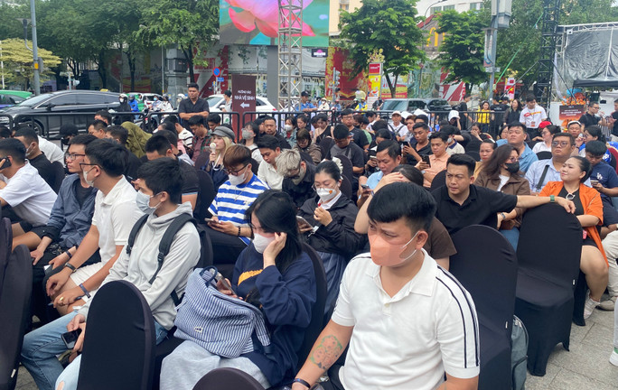 Tại phố đi bộ Nguyễn Huệ (phường Sài Gòn), người dân thành phố xếp hàng từ sáng sớm để chờ đến lượt lấy máy của nhà phân phối TopZone (Thế Giới Di Động).