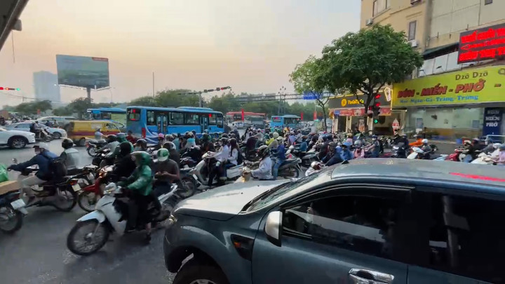 Chiều 26/4, thời tiết oi bức nhưng nhiều tuyến đường ở Hà Nội đã lâm vào cảnh ùn tắc kéo dài do người dân về quê, đi du lịch nghỉ lễ.