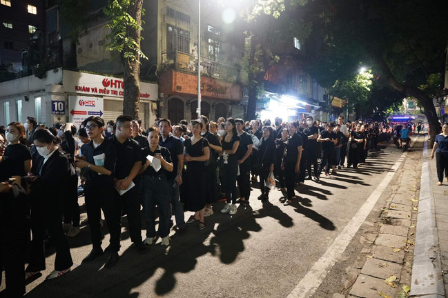 Tối 25/7, hàng nghìn người dân kiên nhẫn xếp hàng vào viếng Tổng Bí thư Nguyễn Phú Trọng tại Nhà tang lễ Quốc gia số 5 Trần Thánh Tông (Hà Nội).