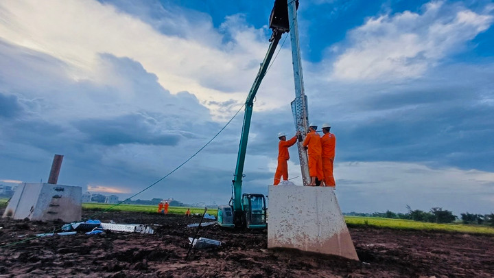 Những hình ảnh đầu tiên của Đội xung kích Công ty Điện lực Bắc Ninh ngày 3/6 tại vị trí cột 117, xã Nam Thắng, huyện Nam Trực, tỉnh Nam Định.