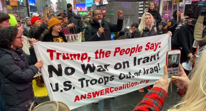 Một số nhóm phản đối chiến tranh đã kêu gọi cuộc biểu tình để lên án việc Mỹ giết chết Thiếu tướng Qassem Soleimani, lãnh đạo lực lượng tinh nhuệ Quds thuộc Lực lượng Vệ binh Cách mạng Hồi giáo Iran.
