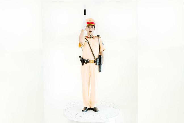 Cảnh sát giao thông giơ tay thẳng đứng, theo bạn, lái xe được đi theo hướng nào, hãy giải thích lựa chọn ở ô bình luận.