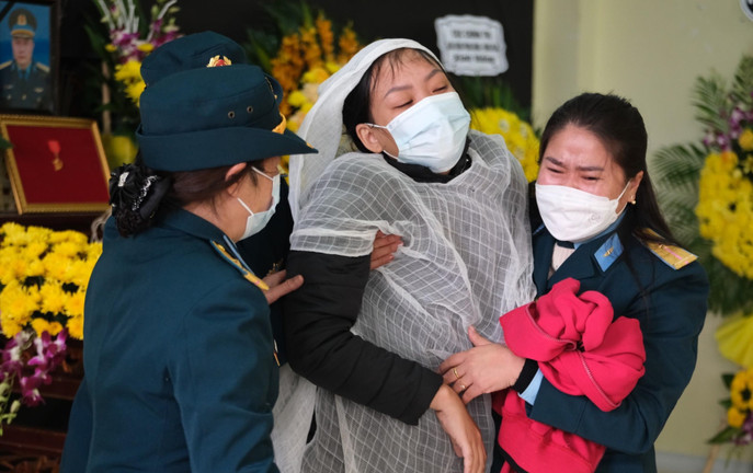 Sáng 1/2, gia đình và đơn vị tổ chức lễ tang cho Thiếu tá phi công Trần Ngọc Duy (SN 1992) theo nghi thức của Quân đội.