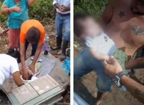 Đoạn phim được chia sẻ ghi lại khoảnh khắc em bé được đưa ra khỏi mộ, hai thành viên trong gia đình cầu nguyện với hy vọng bé còn sống. Một người họ hàng khác cố gắng tìm kiếm dấu hiệu sự sống trên cơ thể bằng cách nâng bàn tay em bé lên kiểm tra, nhưng bé vẫn bất động.