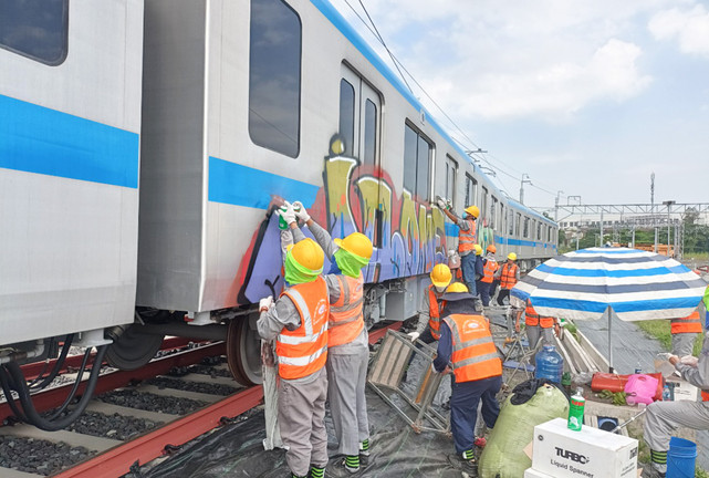 Nhà thầu đã che lại đoạn tàu, nhằm tránh những thông tin sai lệch. Đồng thời thử nghiệm dung môi để tẩy rửa từ ngày 30/4 - 1/5, đến sáng 2/5 tiến hành tẩy rửa vị trí bị vẽ bậy ở các đoàn tàu.