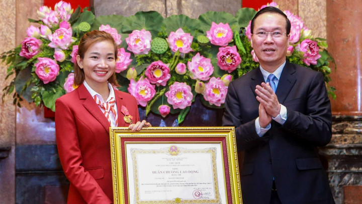 Nguyễn Thị Oanh đã vinh dự nhận huân chương lao động hạng nhì trong lễ biểu dương các VĐV và HLV đạt thành tích cao ở SEA Games 32.