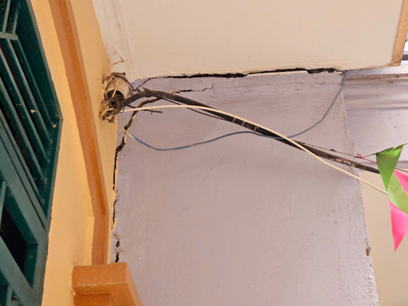 Một căn nhà xuất hiện hàng loạt vết nứt. (Ảnh: Trung Nguyên)