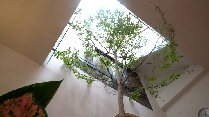 Nhà trong hẻm nhỏ trồng cây bàng cao 3 mét giữa phòng khách