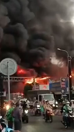 Hỏa hoạn bùng lên từ nhà xưởng chứa đồ gia dụng gần ngã tư Bình Phước, phường Hiệp Bình Phước, TP.Thủ Đức, TP.HCM, sáng 1/3.