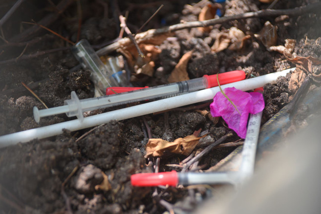 Hàng loạt bơm kim tiêm đã qua sử dụng vứt ngổn ngang trên nhiều cầu bộ hành tại TP.HCM khiến người đi đường lo sợ.
