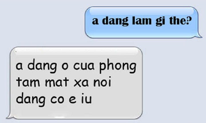 Thì ra chàng trai vốn có tâm hồn lãng mạn nên đã nhắn cho cô gái là: "Anh đang ở cửa, phóng tầm mắt xa, nơi đang có em yêu" nhưng tin nhắn không dấu đã khiến cô gái hiểu nhầm và kết thúc mối quan hệ ngay lập tức.