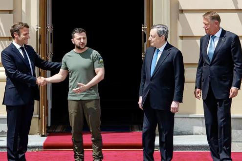 Thủ tướng Đức Olaf Scholz, Tổng thống Pháp Emmanuel Macron, Thủ tướng Italy Mario Draghi và Tổng thống Romania Klaus Iohannis đã đến Ukraine để hội đàm với ông Volodymyr Zelensky tại Phủ Tổng thống Ukraine ở thủ đô Kiev.