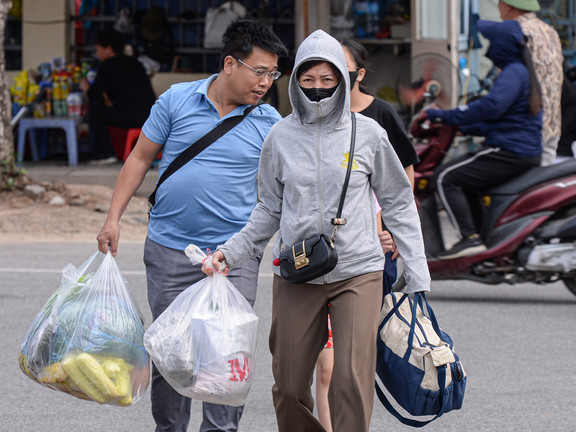Cùng thời điểm tại khu vực lối ra bến xe Nước Ngầm, nhiều bạn trẻ tất tả mang vác những kiện hành lý cồng kềnh, nặng trĩu, di chuyển khó nhọc giữa dòng người đổ về đông đúc.