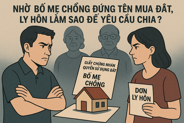 Vợ chồng tôi có nhờ bố mẹ chồng đứng tên mua nhà đất giúp, giờ ly hôn, tôi có thể chia tài sản chung là nhà đất này không?