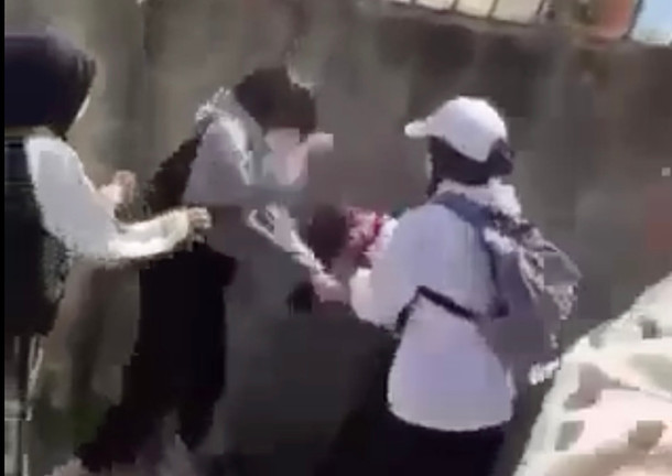 Cụ thể, sau khi đứng nói chuyện, một nữ sinh mặc áo khoác trắng, mũ trắng bất ngờ cầm mũ báo hiểm đánh liên tiếp vào đầu, người nữ sinh mặc áo sơ mi trắng đứng đối diện. Tiếp đó, một nữ sinh khác cũng lao lại nắm tóc, dùng tay đánh nhiều cái vào đầu nạn nhân.