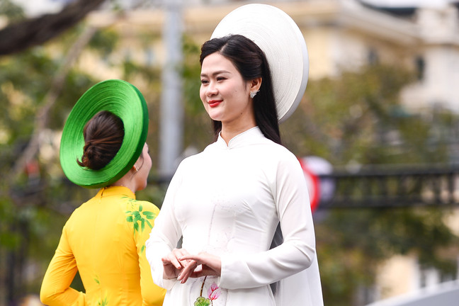 Màn trình diễn áo dài của những nữ chiến sĩ công an nhận được sự hưởng ứng nồng nhiệt từ người dân và du khách nước ngoài.
