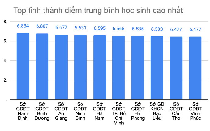 4 năm liên tục, từ 2017 đến nay, Bình Dương và Nam Định là 2 tỉnh luôn lọt vào danh sách 10 địa phương dẫn đầu cả nước về điểm thi tốt nghiệp THPT.