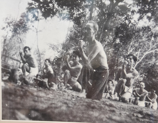 Bác Hồ chơi bóng chuyền với các cán bộ chiến sĩ bảo vệ ở chiến khu Việt Bắc, thời kỳ kháng chiến chống Pháp.