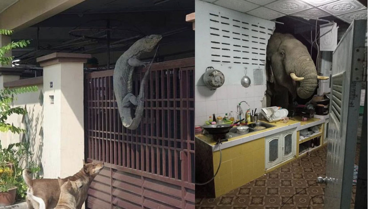 Đã lẻn vào ăn trộm thức ăn mà còn phá luôn cả căn bếp người ta thế này thì có hơi quá đáng đấy bạn voi à!