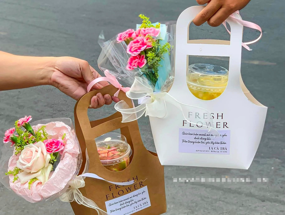 Bên cạnh những bó hoa tươi dùng làm quà tặng 8/3, năm nay những bó hoa kèm đồ uống, cà phê, bánh ngọt, trái cây...được nhiều người săn đón.