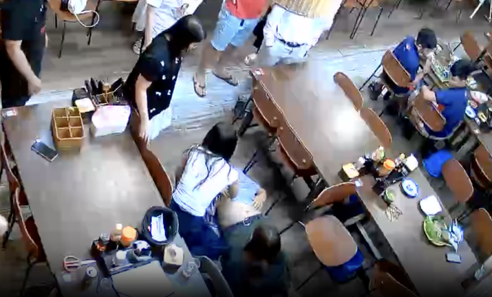 Nữ điều dưỡng cấp cứu cho du khách ngã gục trong nhà hàng.