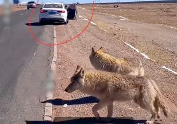 Sợ hãi trước hành động thiếu hiểu biết của nữ du khách trẻ tuổi, anh Ngụy vội vã ngó đầu ra khỏi cửa xe và hét lên: "Đó là sói! Sói hoang dã đó, quay lại xe nhanh lên, các cô còn dám xuống xe, không muốn sống nữa hay sao!"