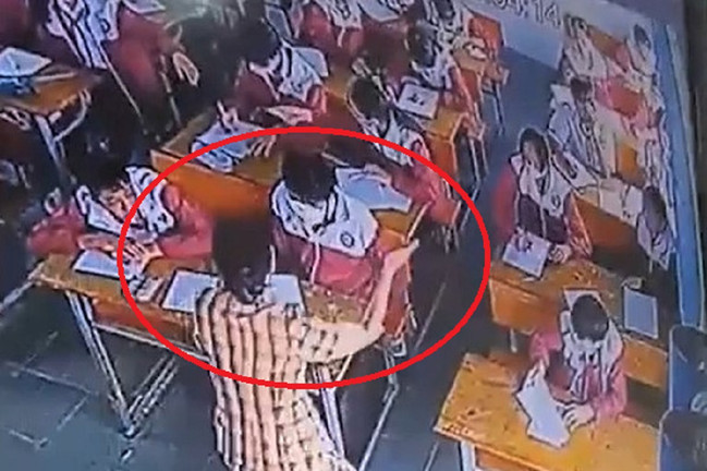 Nữ giáo viên tát vào mặt học sinh trong giờ kiểm tra. (Ảnh cắt từ clip)