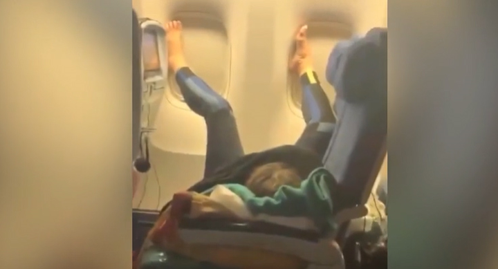 Gác cả 2 chân lên cửa sổ máy bay khi ngủ, nữ hành khách khiến những người khác trợn mắt há mồm.