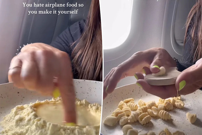 Katie - nhà sáng tạo nội dung ẩm thực - khiến cộng đồng mạng “dậy sóng” khi đăng tải lên TikTok video cô tự làm món mỳ gnocchi tươi ngay trên ghế ngồi máy bay. Cô gái trẻ này vừa ngồi gần cửa sổ vừa trộn bột, cán, cắt và tạo hình mỳ gnocchi theo công thức truyền thống Italy. Clip có dòng chú thích: “Khi bạn ghét đồ ăn trên máy bay đến mức phải tự làm”.