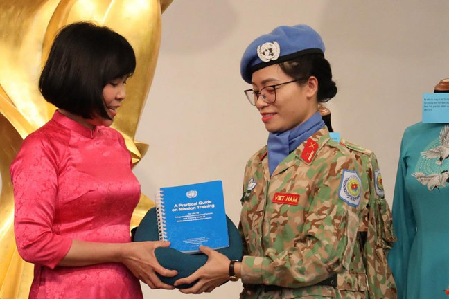 Năm 2020-2021 là thời điểm dịch COVID-19 diễn biến phức tạp, Thiếu tá Mỹ Hạnh và đồng đội gặp rất nhiều khó khăn trong việc đào tạo thực hành. Chị chủ động đề xuất phương án đào tạo online thông qua các phần mềm và nhận được Giấy khen của Phái bộ.
