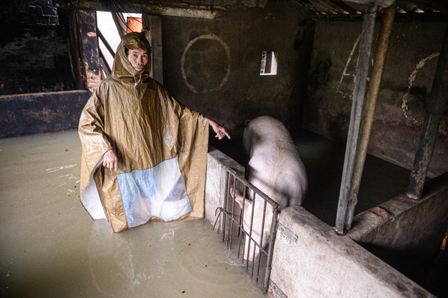 Mưa lớn do hoàn lưu bão số 3 khiến nhiều khu dân cư ven biển Thanh Hoá ngập sâu gần 1m, người dân khẩn cấp di dời đồ đạc, đưa lợn đi chạy lụt.